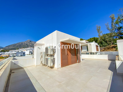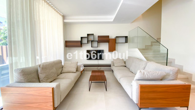 New semi detached villa in the heart of the Golden Mile, Marbella, with tourist license in place. Only 300m from the beach and the Puente Romano. Five-minute drive from Marbella Centre and Puerto Banus. 24-hour security communal pool, gym and spa. Perfect opportunity to own a three bed ( 4th in the basement ) three bath, brand new semi-detached house with private plunge pool. Open plan kitchen, living room leading out to private garden on the ground floor with guest WC. 1st floor hosts three bedrooms , one en-suite, two sharing a bathroom. On the 2nd floor a magnificent solarium with views to the concha mountain. Basement floor living room, 4th bedroom and bathroom. Two car parking spaces with direct access to the house and storage space are also included.