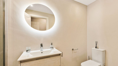 The two-bedroom, two-bathroom apartment has been fully renovated and is equipped with top-of-the-line appliances. It features a luxurious contemporary design with authentic Andalusian details, a spacious private terrace, and a large living room designed by an award-winning interior design firm.