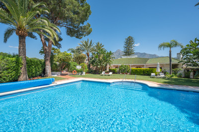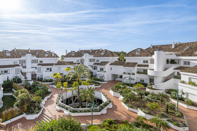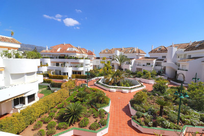 The apartment consists of an entrance hall, from which stairs lead to the first floor which comprises of a comfortable living room with dining area, a fully fitted kitchen, two bedrooms and two en suite bathrooms all refurbished to the highest standards and in very good taste. From the living room and the master bedroom there is access to the south and east facing terrace with beautiful panoramic views to the mountains and garden of the urbanization, ideal for a wonderful and comfortable holiday at 5 minutes from Puente Romano and the best services of Marbella.