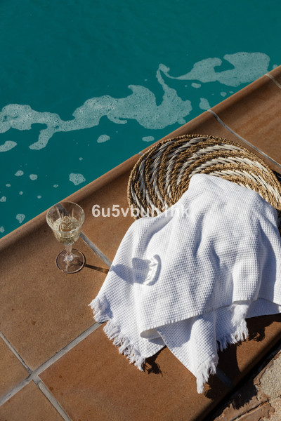 The pool area is designed for relaxation and entertainment, featuring a heated pool with a generous size of 43 square meters. Adjacent to the pool is a semi-covered dining area with lighting, an outdoor lounge, an independent kitchen, and a convenient bathroom.