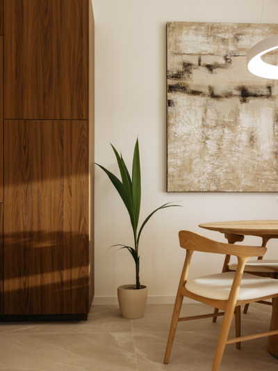 Just outside the kitchen window, a charming lemon tree adds an authentic Mediterranean touch, blending beautifully with the home’s clean Nordic design. From this level, you have direct access to a private terrace, ideal for alfresco dining, relaxing, and enjoying spectacular sunsets over the golf valley.