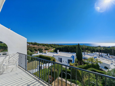 Town House for sale in Cabopino, Marbella with 2 bedrooms, 2 bathrooms, 2 en suite bathrooms and 1 toilet, with communal swimming pool and private garden. Regarding property dimensions, it has 123 m² built, 175 m² plot and 30 m² terrace. Has the following facilities amenities near, air conditioning, fireplace, guest toilet, private terrace, sea view, covered terrace, panoramic view, unfurnished, close to sea / beach, close to golf, uncovered terrace, glass doors, balcony, renovation needed and close to shops.