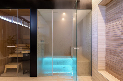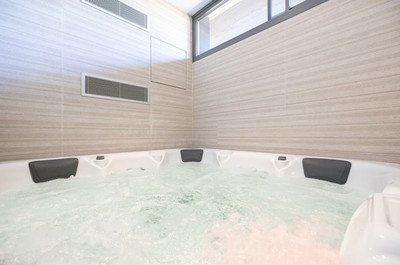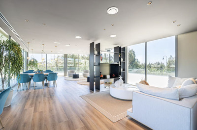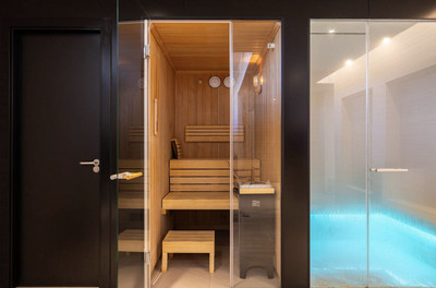 The house is equipped with quality finishes including porcelain flooring, double glazing, aerothermal air conditioning, and electric shutters and comes with underground garage with private parking and storage.