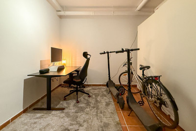 On the ground floor there is a modern kitchen, a bright living-dining room, one bedroom and a bathroom. From this level you can also access two large terraces on both sides of the house, perfect for enjoying the sun throughout the day.
