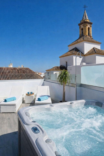 Crowning this remarkable home is a spectacular rooftop solarium featuring a private jacuzzi—an elevated sanctuary offering breathtaking panoramic views across the Old Town skyline and the iconic Church of Nuestra Señora de los Remedios. It is the perfect setting to unwind in complete privacy while soaking in the beauty of your surroundings.