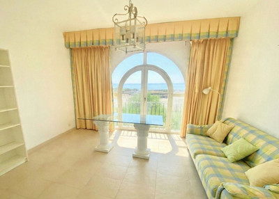 The property offers four generous bedrooms, with the possibility to create an additional bedroom or a home office on the lower level. From the living room you step out onto a sunny terrace with far-reaching sea views, and several of the bedrooms enjoy the same magnificent outlook – stretching all the way to Africa on clear days. The updated kitchen is fully equipped, and the entire home is in excellent condition, featuring central air conditioning and newly installed electric blinds.