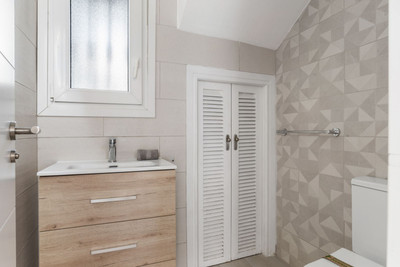 On the first floor, there is the master bedroom with its own bathroom. This bedroom has a small terrace with beautiful sea views. On this floor, there are two more bedrooms and a bathroom.