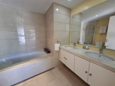 Each of the three generously proportioned bedrooms is a sanctuary of comfort and style, bathed in natural light and thoughtfully designed to evoke a sense of calm and retreat. The master suite and second bedroom both feature elegant en-suite bathrooms, finished with premium fixtures, walk-in showers, and sleek marble accents—perfect for moments of indulgence and privacy.
