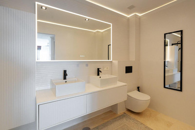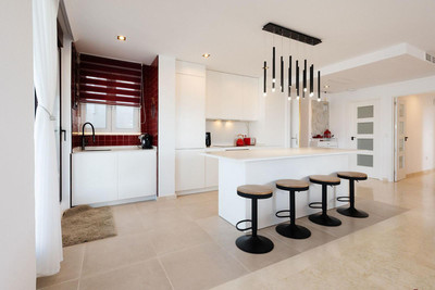 This spectacular renovated house, with its elegant contemporary style, offers a total of three bedrooms with three bathrooms, plus an office area, and a large living room of over 50m2 with an integrated kitchen.