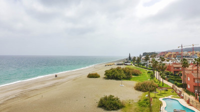 Set in a true frontline beach position within the established Manilva Beach community, this refurbished south-facing townhouse offers direct access to the Mediterranean lifestyle, just a few steps from the sand. With panoramic sea views and a private garden, the property combines coastal living with comfort and privacy in a well-connected location.