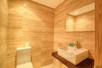 In addition, the large basement offers excellent potential for conversion into two additional bedrooms. It also includes a storage/laundry room and a guest toilet. The impressive rooftop terrace of approximately 70 m² boasts panoramic views of the mountains and sea, stretching all the way to Gibraltar and the African coast. A private parking area for two cars is conveniently located directly in front of the property.