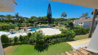 We are delighted to offer this lovely duplex town house in the very convenient location of Miraflores Resort. The property comprises:- Spacious lounge with open fireplace and dining area leading onto large terrace, fully fitted kitchen, master bedroom with en-suite bathroom and dressing room, two further bedrooms, family shower room and cloakroom. Sunny orientation. Lovely communal swimming pool with a bar and restaurant and sub-tropical gardens. Further features includes: additional patio, 24 hours security. Being sold fully furnished. Walking distances to the beach and bus stop.