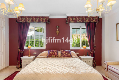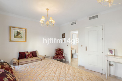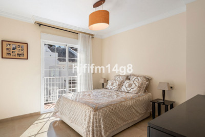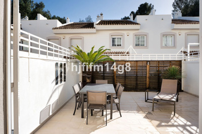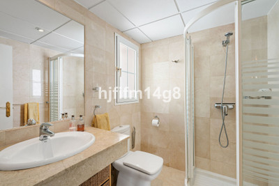 The townhouse is distributed over several levels and offers generous interior and exterior spaces. On the entrance level, you will find a bright and inviting combined living and dining room featuring an open fireplace and direct access to a south-facing terrace, perfect for enjoying Marbella’s year-round sunshine. The fully fitted kitchen is practical and well laid out, complemented by an entrance hall, storage room and a guest toilet on this level.