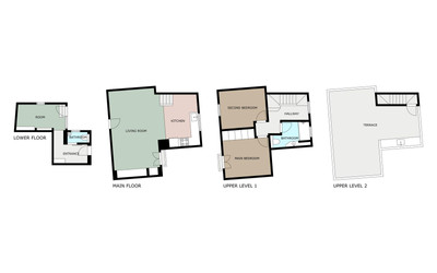 Also on this level is a perfectly finished, tasteful bathroom featuring a large walk-in shower, vanity unit, sink, mirror and toilet.