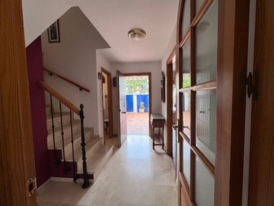 Nice townhouse is located in the sought after area of San Pedro de Alcántara. The house is located only a few minutes walking distance from the center of San Pedro and only 3 minutes by car from the beach. Entering the property you will find the spacious kitchen with a dining table, wooden floors, and direct access to the terrace. Continuing through the ground floor of the house you will find a spacious combined living and dining room where you can relax by the cozy fireplace. Walking back in the direction of the entrance you will find a guest bathroom located next to the staircase leading to the first and second floor. Here, on the first floor, you will find the big master bedroom with en suite bathroom. Also located on this floor is a guest bedroom, a guest bathroom, and an additional room with space to be used as an office or to be converted into a bedroom. Continuing up the stairs to the second floor you will find two spacious rooms with the potential and space to be additional bedrooms or multipurpose rooms, and a guest bathroom. This house also boasts of an terrace on the top floor of the house. Only a short stroll from the house you will find lots of nice restaurants, bars, gyms, and shops. In addition to the amazing location in San Pedro, the house is only 5 minutes from famous Puerto Banus and just 15 minutes from Marbella city center.