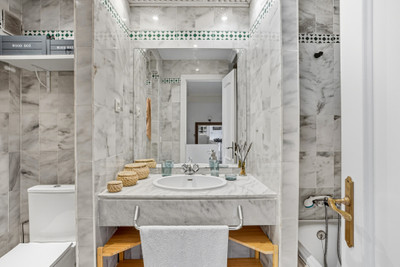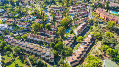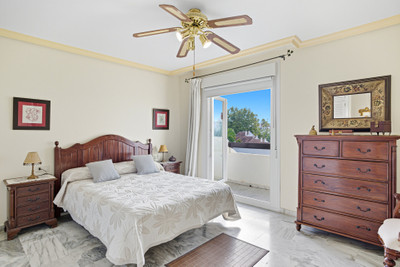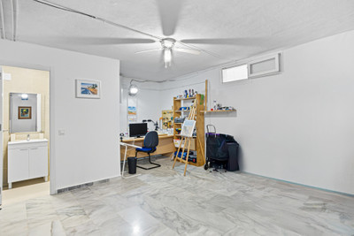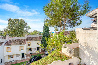 This lovely three-bedroom, south-facing townhouse is set in the sought-after gated community of El Capricho on Marbella’s Golden Mile, offering spacious tropical gardens and two communal swimming pools. Ideally located within walking distance to the beach, bars, and restaurants, and just a short drive from Marbella Center and Puerto Banús, the property combines convenience with charm. The ground floor features a bright living and dining area with a fireplace and access to a generous terrace perfect for outdoor dining, a newly renovated separate kitchen, and a guest toilet. Stairs lead down to a large basement currently used as a bedroom and art studio with its own bathroom. Upstairs, the master suite is accompanied by two guest bedrooms and a family bathroom. Additional highlights include fitted wardrobes, marble floors, and private parking for one car.
