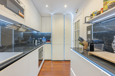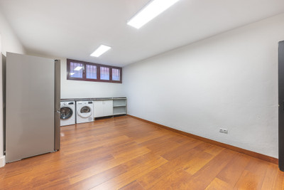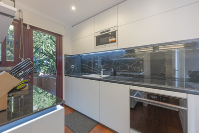 The contemporary kitchen, fully equipped with high-end appliances, features a second terrace — perfect for enjoying sunny breakfasts. A stylish guest toilet completes this level, adding both practicality and sophistication.